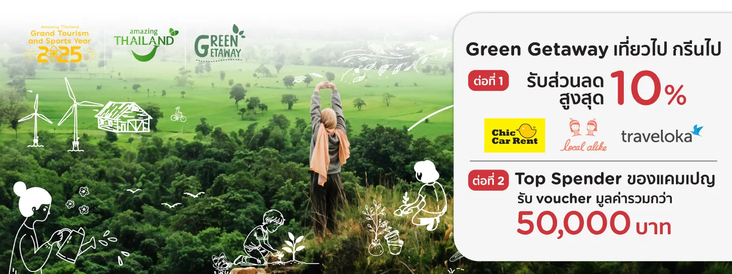รับส่วนลด 10% เมื่อซื้อแพ็กเกจท่องเที่ยว 10 เส้นทางท่องเที่ยวสายกรีนที่ร่วมรายการ