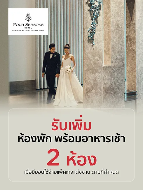 รับเพิ่ม ห้องพักพร้อมอาหารเช้า 2ห้อง เมื่อมียอดใช้จ่ายแพ็กเกจแต่งงาน