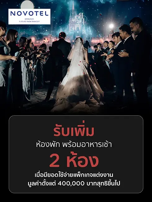 เมื่อใช้จ่ายค่าแพ็กแกจแต่งงานครบ 400,000 บาทสุทธิขึ้นไป (ภายใน 3 เซลส์สลิป)