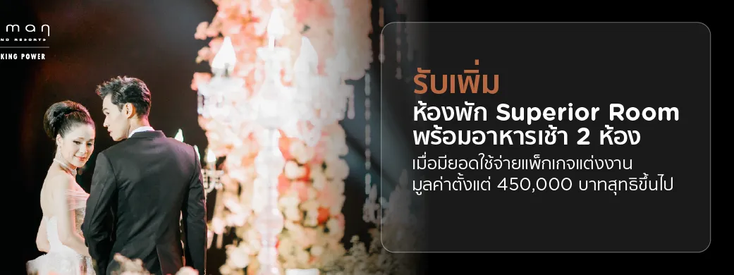 เมื่อใช้จ่ายค่าแพ็กเกจแต่งงานครบ 450,000 บาทสุทธิขึ้นไป (ภายใน 3 เซลล์สลิป)