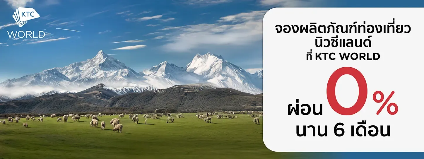 จองแพ็กเกจท่องเที่ยวประเทศนิวซีแลนด์ แบบส่วนตัว เดินทางได้ตั้งแต่ 2 ท่านขึ้นไป มีให้เลือกทั้งเกาะเหนือ และ เกาะใต้ของนิวซีแลนด์ จัดโดยบริษัทชั้นนำ พิเศษสำหรับสมาชิกบัตรเครดิต KTC เมื่อจองที่ KTC World Travel Service