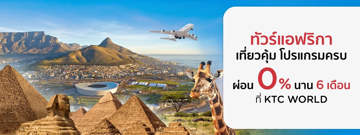 ชวนคุณบินรอบโลก ลัดฟ้าสู่ดินแดนแอฟริกา พาคุณไปเปิดประสบการณ์ใหม่ มีให้เลือกหลากหลายเส้นทาง หลากหลายโปรแกรม กับบริษัทชั้นนำ ผ่านบัตรเครดิต KTC ที่ KTC WORLD